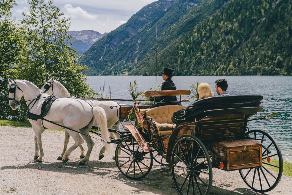 Der Sommer am Achensee ist die Zeit der Outdoor-Erlebnisse. Der grünblau schillernde See, das Karwendel-Gebirge und die Berge des Rofan werden zur Bühne und Kulisse der Wanderer und Mountainbiker. Citybikes, Mountainbikes und E-Bikes stehen im Posthotel Achenkirch zum Ausleihen bereit. Geführte Wander-, Rad- und Mountainbiketouren bringen Naturbegeisterte zu den reizvollsten Plätzen der Region. Der 9-Loch-Golfplatz Posthotel Alpengolf liegt in direkter Hotelnähe auf einem Hochplateau und grenzt unmittelbar an das Karwendel-Naturschutzgebiet. Schnuppergolfen, Einsteigerkurse und Platzreifekurse fördern den perfekten Abschlag. Mit dem Posthotel-Golfcart geht es für Golfer ganz bequem vom Hotel zur Golfanlage. Im hoteleigenen Reitgestüt stehen zwölf Lipizzaner. Reitkurse, Ausritte und Kutschenfahrten holen den Reitern das „Glück der Erde“ in den Urlaub. Wer Lust auf Nervenkitzel hat, der kann beim Paragleiten über den glitzernden Achensee oder im Hochseilgarten auf einem der sechs Parcours durch die 15 Meter hohen Baumwipfel das Adrenalin spüren. Die Tennisspieler sind im Posthotel Achenkirch am Freiplatz oder in der Tennishalle aktiv. Der Achensee, der größte See in ganz Tirol, präsentiert sich als Eldorado für Wassersportler. Ganz in der Nähe des Posthotel Achenkirch geht es zum Segeln, Surfen, Kanufahren oder Schwimmen. Ein großes Outdoor-Fitnessareal am Hotel macht die frische Bergluft zum Motivator. Der Raum rund um das Posthotel Achenkirch, sich unter dem Sommerhimmel zu entfalten, ist groß, vielfältig und spannend.