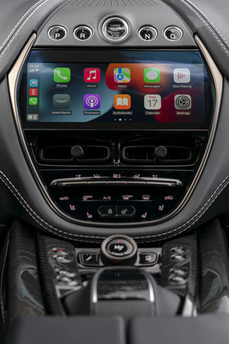 Auch im Innenraum wird er dem sportlichen Charakter mit serienmäßigen Sport-Sitzen gerecht, die jedoch auf Wunsch und ohne Aufpreis durch Comfort-Sitze ausgetauscht werden können. Alle Sitzvarianten sind 16-fach elektrisch verstellbar und serienmäßig auf den Vorder- und den Rücksitzen mit einer Sitzheizung ausgestattet. Bei der Gestaltung des Fahrgastraums besteht die Wahl zwischen der serienmäßigen Variante „Accelerate“, einer Mischung aus Leder und Alcantara®, sowie der Sonderausstattungsvariante „Inspire Comfort“ und „Inspire Sport“ mit Semi-Anilinleder sowie eingestickten Aston Martin Flügel-Emblemen auf der Kopfstütze, einem in der Sitzmitte verlaufenden Kontraststreifen sowie Perforationsmustern in der Rückenlehne und in der Polsterung der Sitzfläche.