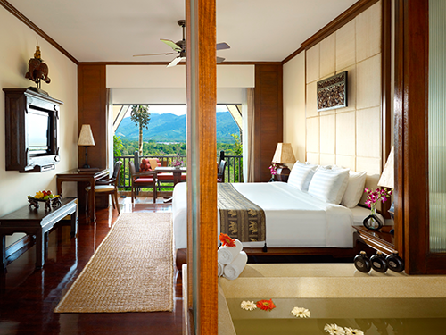 Bekannt aus den vergangenen Zeiten der Opiumära und zum anderen wahrscheinlich auf das Gold, mit dem chinesische Händler anfänglich das Opium bezahlten, stammt der Begriff „Golden Triangle“ aus dem Jahr 1971. Längst sind die Zeiten des Drogenhandels der Region Geschichte. Ein modernes Multimedia Museum, nächst dem Anantara Golden Triangle Elephant Camp & Resort, klärt auf über die Drogengeschichte, aber auch über die medizinische Entwicklung daraus. Erwähnt sei hier das allerorts bekannte Aspirin. Die einstündige Anreise mit Kleinbus verfliegt im Nu und führt durch die beschauliche Stadt Chiang Rai, bekannt für seine sehenswerten Tempelanlagen, den berühmten Smaragd Buddha und den weißen Tempel Wat Rong Khun. Fernab dem Massentourismus, eröffnet sich dem Besucher die vollkommene Schönheit der Provinz mit oftmals mystisch im Nebel verhangenen Bergen und dichten Regenwäldern. Die zerklüfteten Gebirgszüge im Norden von Chiang Rai, beherbergen Bergvölker, die ihre eigenen Sprachen, Trachten und Gebräuche pflegen, und als ethnische Minderheiten in Zurückgezogenheit leben. Auf Trekkingtouren erfährt der Besucher mehr über deren Leben, das handwerkliche Geschick für Stickereien, Webwaren, Silber arbeiten oder Holzschnitzereien. Satte, grüne Reisfelder prägen die Landschaft, zählt doch Chiang Rai zu den wichtigsten Reislieferanten des Landes. Angekommen in dem auf einer Anhöhe liegenden Anantara Golden Triangle Elephant Camp & Resort bleibt die Zeit stehen. Eine Welt, die alles vergessen lässt – eingefangen in der Stille der Natur mit atemberaubendem Blick in die Weite der Landschaft über das breite braune Band des Mekong Flusses hin über bis Myanmar und Laos. Vervollständigt wird die Idylle vom Trompeten der Elefanten und dem exotischen Vogelgesang. Das berühmte Elefantencamp des Resorts ist eine Institution, (www.helpingelephants.org) die dafür sorgt, die sanften Riesen aus nicht artgerechtem Einsatz zu befreien, medizinisch zu versorgen und möglichst artgerecht zu halten. Das Resort, gestaltet im Stil eines traditionellen Mahout Dorfes, bietet den Gästen die einzigartige Gelegenheit, die sanften Riesen hautnah zu erleben oder einfach in natürlichem Lebensraum zu beobachten. ElefantenLernprogramm, Trekking mit sanften Riesen, Berühren, Füttern, Reiten und Baden mit dem Elefanten (ohne Sattel) in Begleitung der Mahouts, ist ein einzigartiges Erlebnis. Im Resort wird alles geboten, um einen entspannten Aufenthalt zu genießen. 63 Zimmer und Anantara Suiten im traditionellen thailändischen Stil mit Seidenstoffen und Teakholzmöbel, Satelliten TV, Flatscreen und HighSpeed Internetzugang sowie Kaffeemaschine. In den Suiten werden zusätzliche Extras angeboten, wie ein kostenfreier Wäscheservice, täglicher Cocktail und Tageszeitungen. Drei Restaurants mit ausgezeichneten thailändischen, internationalen Spezialitäten und eine Bar mit Terrasse sorgen für das leibliche Wohl. Ein Infinity Pool mit integriertem Jacuzzi, Fitnessbereich, Squashplatz, Tennisplätze, Mountainbike Verleih und Kinderbetreuung bieten Entspannung und die sportlichen Aktivitäten kommen nicht zu kurz. Ein 250 Quadratmeter großes Anantara Spa mit fünf SpaSuiten bietet luxuriösen Wellness. Zahlreiche Aktivitäten wie Thai Kochkurs, Yoga, Baumpflanzen, Exkursionen nach Laos, Myanmar oder Chiang Rai, Bootfahren auf dem Mekong und der wunderschöne 18-Loch Kurs des Waterford Valley GC, der rund 1 Stunde entfernt liegt, sorgen für optionales Programm. Das Resort wurde 2003 eröffnet und erhielt 2011 die Green Globe Zertifizierung für nachhaltiges Handeln im Tourismus.