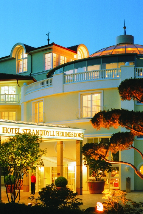 Direkt an der Strandpromenade, inmitten einer mediterran anmutenden Gartenlandschaft, und unweit von der Seebrücke des Seebades Heringsdorf an der malerischen Ostseeküste, liegt das Travel Charme Strandidyll Heringsdorf. In dem Hotel gibt es 136 Zimmer und sieben Suiten, die geräumig und luxuriös ausgestattet sind, die meisten verfügen zudem über einen Balkon.