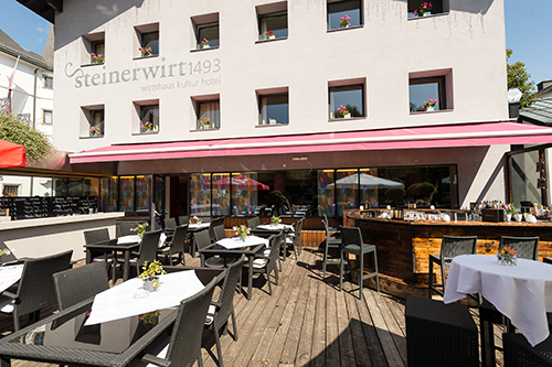 Wer in den Steinerwirt kommt, darf sich vor allem auf viel Genuss freuen. Den Gästen bleibt selbst überlassen, wann sie im Hotel und wann lieber auswärts speisen. Aber so viel sei gesagt: Die Kulinarik wird in diesem Hause großgeschrieben. Das bestätigt auch Simon Schuster und schenkt währenddessen noch ein Gläschen Wein nach. Die edlen Tropfen werden in einem uralten Kellergewölbe gelagert und die schmackhaften Speisen im Sommer auch gern im Gastgarten serviert. Im Steinerwirt setzt man auf Regionalität. Und der Urlaub wird mit einer Portion köstlichem Tafelspitz oder süßem Kaiserschmarren perfekt. Doch nicht nur kulinarisch, sondern auch Wellness-technisch weiß das Haus aus dem Jahre 1493 zu überzeugen. Zur Entspannung werden Sie kurzerhand auf das Dach geführt. Und da lässt sich’s, bei Spitzen-Panorama und Rundum-Feel-Well-Service, besonders gut durchatmen.