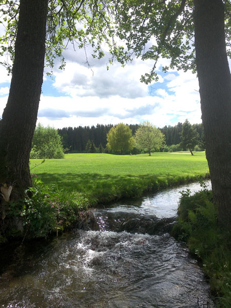 nerteich und der romantischen Ruine Steinschloß. Die 18-Loch Anlage fügt sich harmonisch in die natürlichen Geländegegebenheiten ein und bietet Golfgenuss für jedes Spielniveau. Vom jungen sportlichen Golfer, bis zum Seniorengolfer, hier hat jeder die Möglichkeit sein Golfspiel und die wunderschöne Landschaft zu genießen. Ein modernes Clubhaus lässt auch nach dem Spiel keine Wünsche offen.