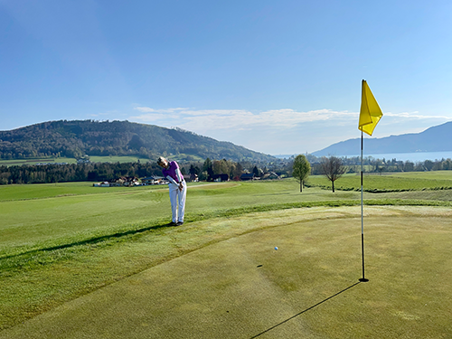 Und wie steht es um ihre eigenen Golfaktivitäten? Auf die Frage nach ihren Lieblingsplätzen schwärmt sie gleich wieder von exotischen Regionen. Es ist der Red Mountain Golf Club in Phuket/Thailand, ein Platz mit roten Hügeln und Bergen inmitten einer Golf- und Dschungellandschaft. Doch bei ihrem Ranking kommt gleich wieder ihre Heimat Österreich ins Spiel. Hier stehen natürlich ihr Heimatclub, der Golfclub am Attersee, mit dem Seepanorama und der Golfclub Wilder Kaiser mit der atemberaubenden Kulisse des Wilden Kaisers auf den vorderen Plätzen. In golferischer Hinsicht gehören auch der Golfclub Kössen – wo sie einen Teil ihrer Golf-Kindheit verbracht hat – und der Golfclub Bad Waltersdorf auf ihre Besten-Liste. Hier hat Sandra als ausgebildete Proette bei einem Turnier mit 9 unter Par ihre beste Golfrunde gespielt. Damit hält sie immer noch den Platzrekord!