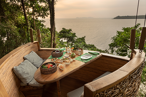 Die kleinsten der 36 großen Villen verfügen über ein Schlafzimmer und eine In- und Outdoorfläche von 403 m², für Großfamilien geht es dann aufwärts bis zu sechs Schlafzimmern und einer Fläche von 2.928 m². Sie haben richtig gelesen – im Soneva Kiri haben Luxus und Raum eine mehr als großzügige Dimension. Gemütlicher wird es in den fünf Restaurants und Bars, besonders lecker im einzigartigen und gekühltem Schokolade-Raum. Im Freiluftkino mit riesiger Leinwand und Barbetrieb lässt es den Tag gemütlich ausklingen. Wobei ganz stimmt das nicht, Benz’s Restaurant – entweder mit dem Jeep oder per Boot zu erreichen – ist ein absolutes Muss, Thaiküche vom Allerfeinsten, doch leger – eben im Soneva Stil. Oder ein Essen im Baumhaus. Ein Erlebnis.
