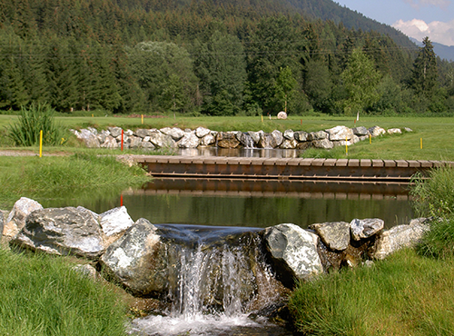 DER PLATZ: Der Golfclub, seit Jahren ein Juwel unter den steirischen Golfplätzen, bietet Überraschungen für anspruchsvolle Golfer, Gourmets und Genießer. Der in den 90er Jahren erbaute 18 Loch Golfplatz erlebte ein Re-Design, durchgeführt vom irischen Architekten Jeff Howes. Sowohl Singlehandicapper, wie auch Anfänger, finden 18 Loch hindurch Abenteuer und Überraschung. Die Anlage verfügt zusätzlich über viele idyllische Teiche, gepflegte Blumenwiesen und versteckte Bäche. Die tiefgrünen Fairways, umgeben von den Hügeln des Aichfelds, lassen Stress und Hektik des Alltags vergessen.
