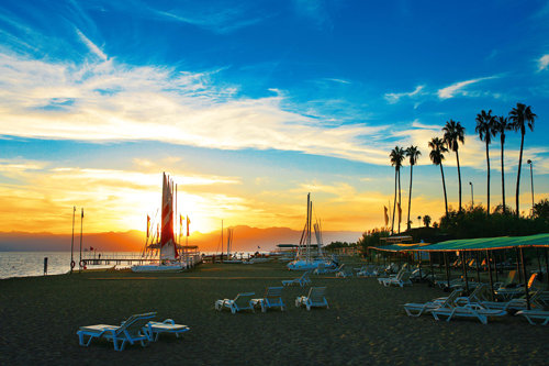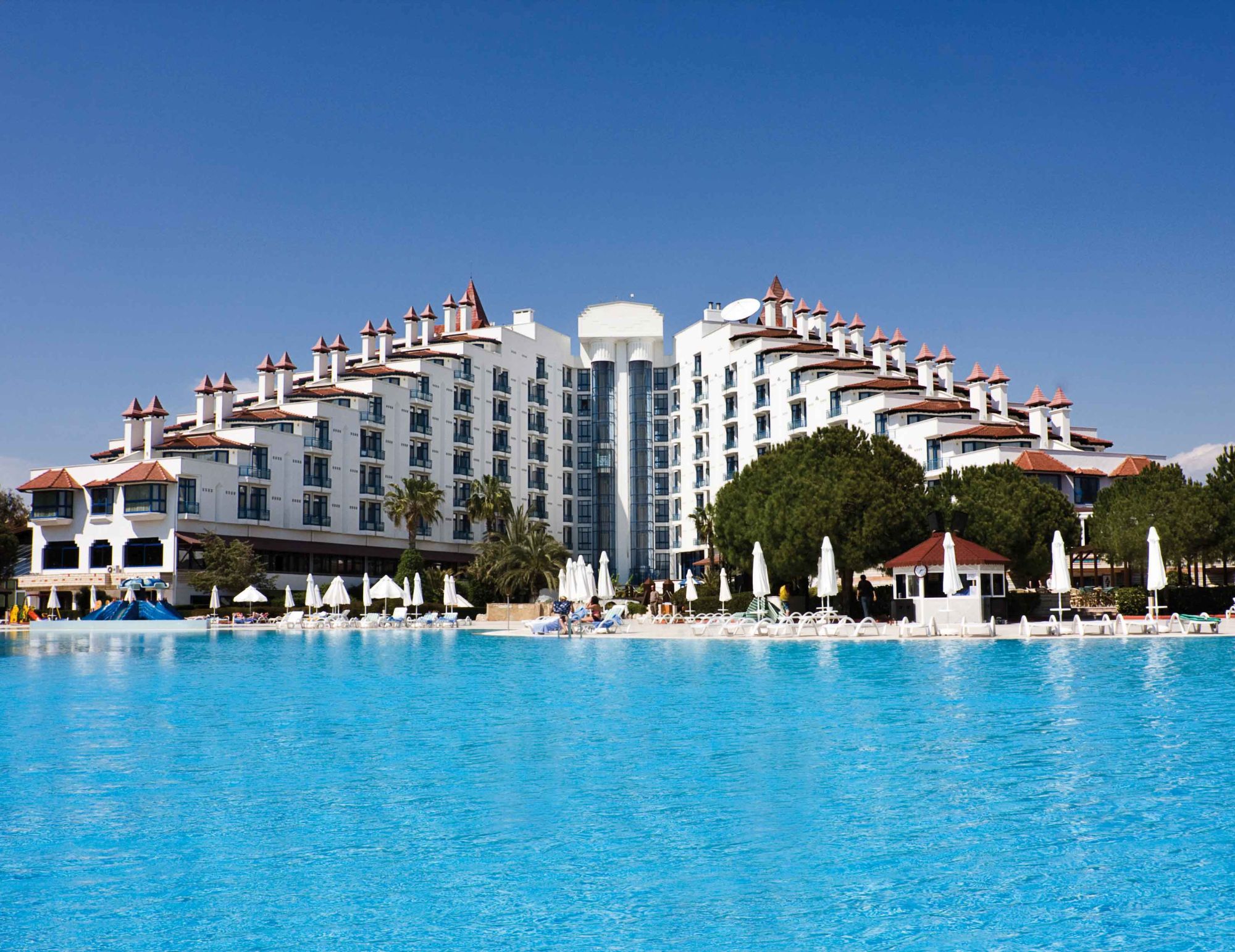 Der Fünf-Sterne Chervo Club Sirena liegt direkt am Strand, rund 25 Kilometer vom Flughafen Antalya und vier Kilometer von Kadriye entfernt. Auf einer Gesamtfläche von 180.000 Quadratmetern befinden sich 453 Zimmer, die auf zwei Hauptgebäude und fünf Bungalowgebäude aufgeteilt sind.