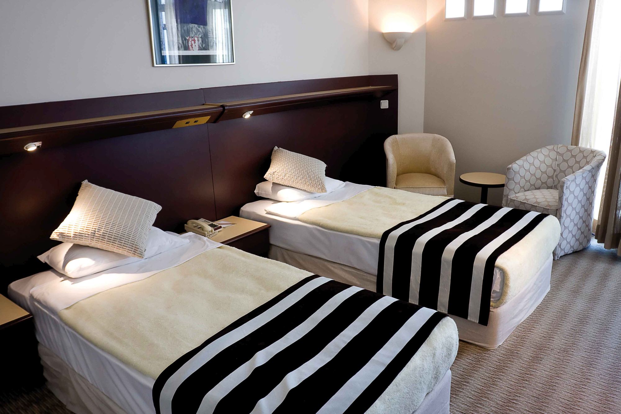 Gäste können zwischen „Doppelzimmer“ (mit oder ohne Meerblick), „Terrassenzimmer“ oder „Bungalowzimmer“ wählen.