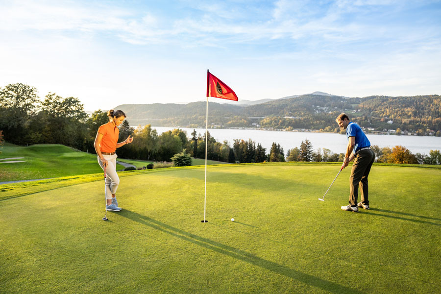 Badeurlaub oder Golfurlaub? Wanderurlaub oder Golfurlaub? Bike Urlaub oder Golfurlaub? In Kärnten gibt es kein entweder oder. Bevor Sie am ersten Abschlag stehen, können Sie bereits eine Runde im See schwimmen oder mit dem Bike unterwegs gewesen sein. Auch wenn die mitreisende Partnerin oder der mitreisende Partner noch nicht vom Golfvirus infiziert wurde, lohnt ein gemeinsamer Urlaub in Kärnten. Während der eine sein Glück auf dem grünen Rasen versucht, kann der andere dem aktiven Genuss beim Radfahren, Wandern oder Wassersport frönen.