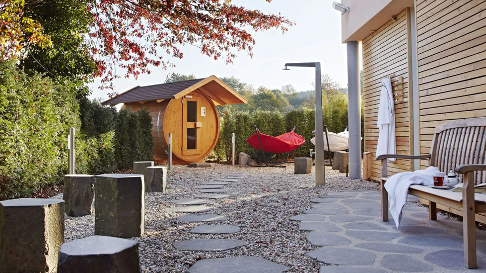 Nach einer Runde auf dem anspruchsvollen, von alten Bäumen, Steh- und Fließgewässern umgebenen, leicht hügeligen Golfplatz wartet das Babor Wiesensee Spa mit Innenpool, Saunen – auch einer Außensauna – und auf Golfer abgestimmte Behandlungen.