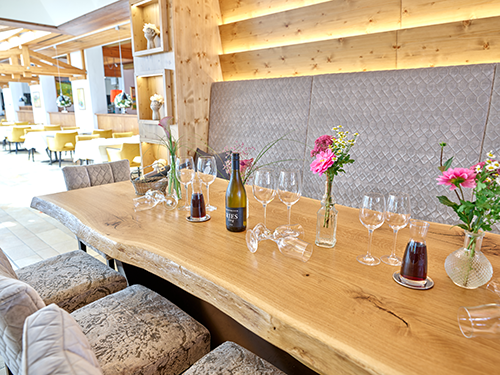 Der Gaumen wird verwöhnt, wenn regionale Schmankerl auf köstliche Spezialitäten treffen, begleitet von erlesenen Weinen & Spirituosen. In unserer Hotelbar können Sie in entspannter Atmosphäre und bei einem guten Glas aus der Region oder einem frisch gezapften Pils und kleinen Snacks den perfekten Urlaubstag ausklingen lassen. In unseren Restaurants finden Sie alles – sei es in der Kaminstube, im Stüberl, im Classico oder im Wintergarten, in der Galerie oder im Marieneck…