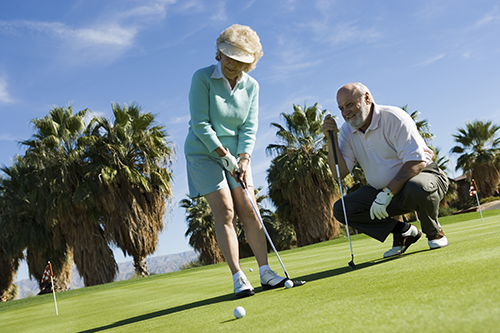 Auch meine Golffreundin Irene hat sich gerade frisch verliebt, obwohl das eigentlich gar nicht zu ihren Eigenschaften gehört. Geschweige denn zu ihrem Lebensplan, der bisher aus Verwöhn-Aktionen für Enkelkinder, Abo-Konzertbesuchen, gelegentlich einer Studien-Reise und sportlichen Runden in ihrem heimatlichen Golfclub bestand. Liebe war nach ihrem letzten Versuch komplett aus ihrem Wortschatz verschwunden. Aber nun ist Thomas in ihr Leben getreten. Im britisch geprägten Golf-Outfit und mit bestem Schläger-Equipment lernten sie sich bei einem 2er-Scamble eines Charity-Golfturniers kennen. Sie schwang gekonnt ihren lieb gewonnen Rescue, während er routiniert seine Eisen und Hölzer einsetzte. Irene fand es ausgesprochen angenehm, mit diesem Menschen, den sie am Morgen noch gar nicht kannte, einfach spielen und reden zu können. Und sie spürte nach langer Zeit das erste Mal, dass sie einen Mann wiedersehen wollte. Daraufhin trafen sie sich zu vielen Runden, verabredeten sich zum Essen, erzählten, diskutierten … und harmonisierten. Natürlich waren sie auf der Clubterrasse längst schon Gesprächsstoff: „Hast du gesehen, wie er ihre Bälle sucht und ihr die Schläger putzt?“ Auch die Siegerehrung des nächsten Turniers hatte es in sich, als Irene zur absoluten Putt-Königin ausgerufen wurde und Thomas sie gleich innigst mit einem liebevollen Kuss vor den begeisterten Golffreunden beglückwünschte. Als er sich von ihr löste, merkte sie erst, dass sie die Luft angehalten hatte. Ihre Liebe haben sie beim Golfen gefunden … und das ist gut so!