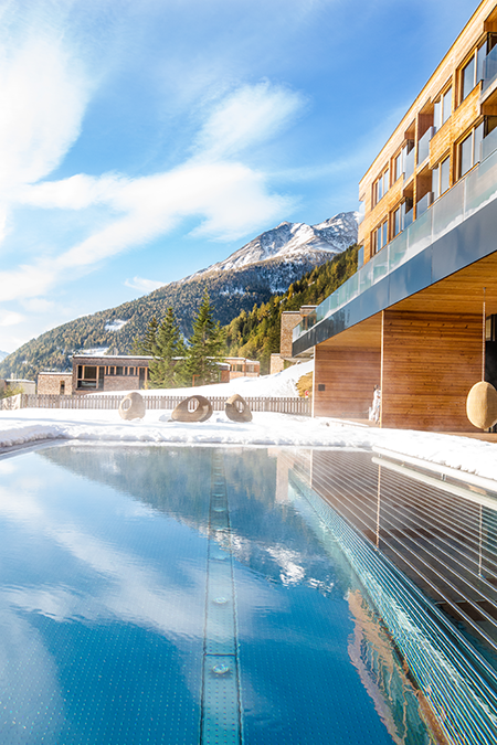 Das autofreie Gradonna****s Mountain Resort oberhalb von Kals am Großglockner beeindruckt mit einer visionären Architektur fernab von alpinen Klischees. Wie in einem Bergdorf liegen 41 Châlets auf 1.350 Höhe locker verstreut um ein Viersterne-Superiorhotel. Mit Lärchenschindeln verkleidete, kubische Formen und ganzseitige Fensterfronten prägen das Bild. Der Blick nach draußen zeigt die Pracht der Winterwelt der Hohen Tauern rings um den Großglockner; der nach drinnen eine klare Formen- und Farbensprache sowie natürliche Materialien wie Zirbe, Fichte, Leder, Leinen, Loden und Kalser Marmor. Gewohnt wird im in bis zu 57 m² großen Suiten oder in Châlets mit bis zu 120 m² Fläche für bis zu acht Personen. Alle Zimmer haben eine eigene Relaxzone, Balkon, Terrasse oder Frischluft-Atrium. Im Hotel gibt es ein 3.000 m² großes Spa, einen Sport Shop, einen Feinkostladen und ein Restaurant, das zeitgemäße Küche aus vorwiegend regionalen Produkten serviert.