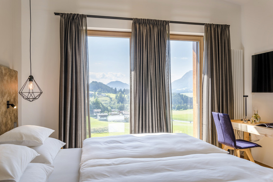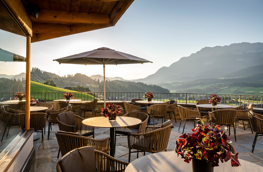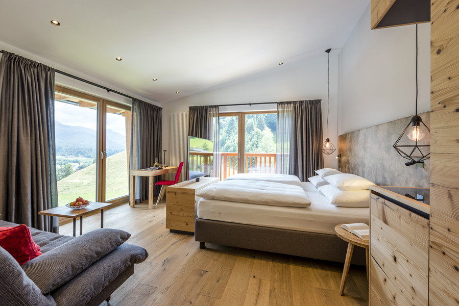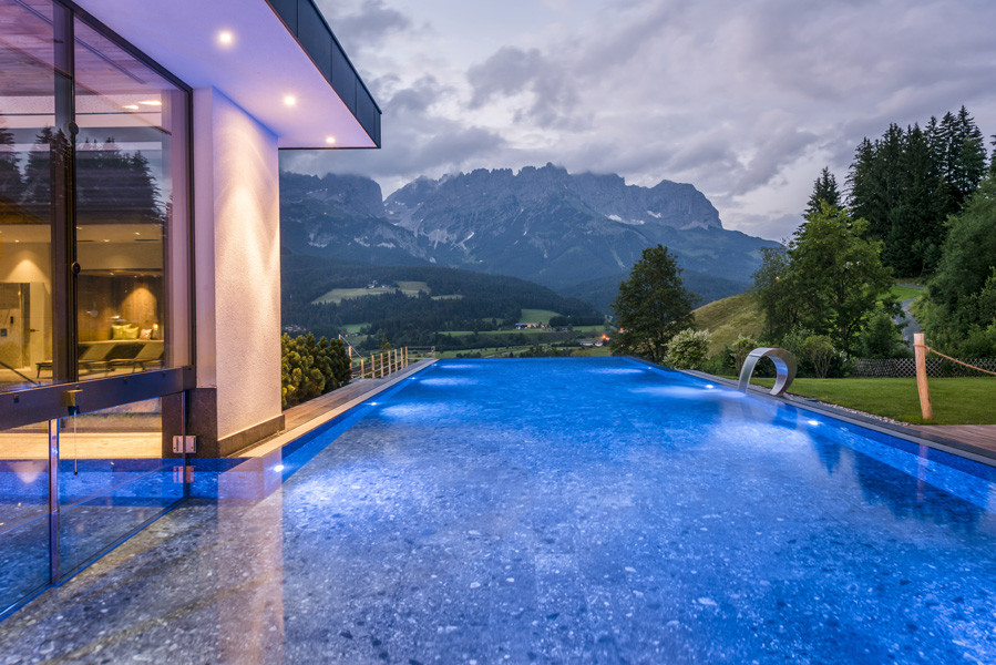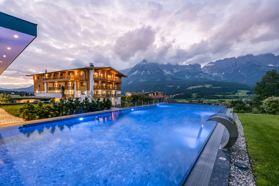 In dem Genuss- und Lifestyle-Hotel in Ellmau genießen Urlauber die individuell perfekte Auszeit vom Alltag und erleben das besondere Flair der Tiroler Alpen. Ursula und Andreas Windisch verwirklichten ihre Vision und geben dem Haus eine neue Atmosphäre. Ein Highlight ist ganz sicher der 20 Meter lange, ganzjährig beheizte Infinity Pool mit Bergblick. Das Badehaus mit Hallenbad, Panorama-Ruheraum mit Kamin und Saunalandschaft lädt zum Entspannen vor einer Traumkulisse ein. In den neuen, individuell gestalteten Zimmern und Suiten mit Kaiserblick trifft Komfort auf Understatement. Eleganz auf lässige Sportlichkeit. Dabei sorgen die hellen Eichenholzböden für ein entspanntes Gefühl der Leichtigkeit. Edle Stoffe geben dem Raum eine elegante Note. Tiroler Loden schenkt dem Raum ein charmantes alpines Flair. Die Cooking Station lässt jeden Besuch zum Erlebnis werden. Passend dazu werden kulinarische Köstlichkeiten aus der mit einer Gault-Millau-Haube und drei Falstaff-Gabeln ausgezeichneten Küche serviert. Küchenchef Markus Feyersinger und sein Team verwöhnt Sie jeden Tag aufs neue mit regionalen und internationalen Köstlichkeiten. Alpiner Charme, modernes Interieur und authentische Gastfreundschaft begleiten hier jedes Menü genauso selbstverständlich, wie die von Sommelier Robert Lechner sorgfältig ausgewählten Tropfen aus Österreich und der ganzen Welt.