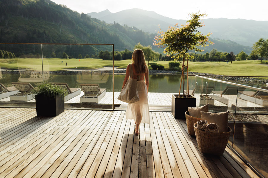 Klare Linien, moderne Gemütlichkeit und ein traumhafter Ausblick auf den hauseigenen Golfplatz und die umliegenden Zillertaler Alpen. Die großzügigen Zimmer und Suiten laden zum Wohlfühlen und Weitblicken ein. Die hochwertige Ausstattung, verbunden mit edlem Design und angenehmen Materialien, schafft das perfekte Urlaubsambiente.