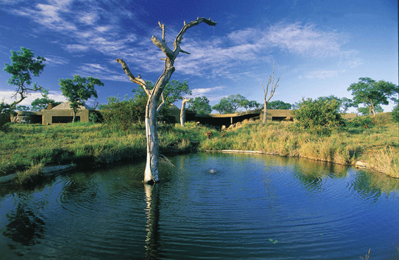 Der Name der „Earth Lodge“ ist architektonisches Programm. Wie ein Gang in die Tiefen der Erde mutet der Weg zu diesem exklusiven Hideaway an, das sich mit dem Eintritt in die Lodge in eine paradiesische Landschaft öffnet. Als spektakulär lassen sich die Formensprache der Architektur und des Designs der Earth Lodge bezeichnen. Ausschließlich Naturmaterialien der unmittelbaren Umgebung wurden verbaut, sei es in Form lehm- und strohverkleideter Wände oder des von Künstlerhand gestalteten Mobiliars aus Schwemmholz des nahen Sabi-Flusses.