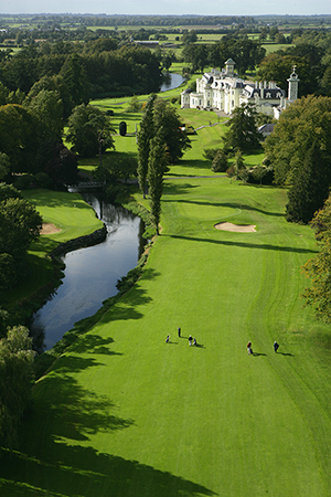 The K Club – so kurz der Name auch ist, seine Bekanntheit reicht dafür umso weiter, weit über Irland und den britischen Inseln hinaus. Seit im K Club im Jahre 2006 die besten Profigolfer aus Europa und den USA um den Prestigesieg im Ryder Cup kämpften (die Europäer deklassierten die Amis mit 18,5:9,5 Punkten), hat das nur eine halbe Stunde von Dublin und dem Flughafen in dem Dorf Straffan gelegene Resort, einen ganz besonderen Klang und steht auf der „Must Play“-Liste vieler Golfer aus aller Welt. Seit 1991, als das Fünf-Sterne-Luxushotel erstmals Gäste empfing – damals noch unter dem ursprünglichen Namen „The Kildare Hotel and Golf Club“ – steht der K Club für „understated luxury“, für unaufdringlichen Luxus, für zwei vorzügliche Golfplätze und ein vielfältiges Angebot sowohl sportlich als auch kulinarisch. Die Geschichte des K Club im County Kildare reicht bis ins frühe 19. Jahrhundert zurück. Der berühmte französische Winzer Hugh Barton floh in den Wirren der französischen Revolution nach Irland, um der Guillotine zu entgehen. Er erwarb am Ufer der Flusses Liffey ein 223 Hektar großes Anwesen. Das eindrucksvolle Familienheim ließ er nach dem Vorbild der französischen Schlösser bauen. Es wurde 1831 fertiggestellt – und ist auch heute noch das Zentrum dieses Resorts. Vor allem die Eleganz dieser Epoche ist heute noch überall im K Club zu spüren, obwohl um das einstige Herrenhaus weitere Gebäude entstanden sind.