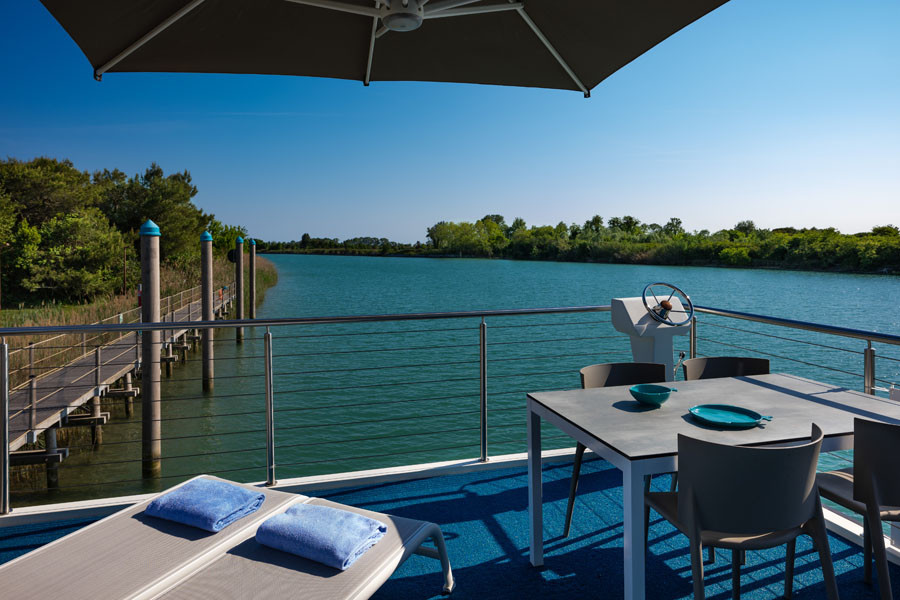 Für Erfrischung sorgt die liebevoll gepflegte Poollandschaft des Resorts oder ein Sprung in die perfekt temperierte Adria am nahen Strand von Lignano Sabbiadoro. Das Marina Azzurra Resort kombiniert den Komfort eines exklusiven Ferienerlebnisses mit dem unvergleichlichen Charme des Dolce Vita. Ein Highlight ist das Emerald River Clubhouse, ein großes Restaurant-Schiff, das mit typisch italienischen Gerichten für kulinarische Höhepunkte sorgt. Und wer seinen Abend entspannt ausklingen lassen möchte, genießt einen Aperol Spritz in der Sky Cocktail Bar auf dem Sonnendeck, begleitet vom sanften Plätschern des Wassers. Meraviglioso!