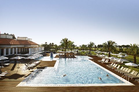 Eine lang gestreckte Sandinsel ist mitten im Naturschutz- gebiet Ria Formosa der Küste vorgelagert. Bedingt durch Ebbe und Flut ändert sich die Küsten- szenerie täglich, so dass die Erreichbarkeit des Strandes der Sandinsel zu Fuß teilweise eingeschränkt ist. Ein hauseigener Shuttle bringt die Gäste vom Club zum Strand, die Gehzeit zu Fuß beträgt rund 15 Minuten. Der Club verfügt über zwei Restaurants, mehrere Bars, mehrere Pools und Internetstation sowie WLAN.