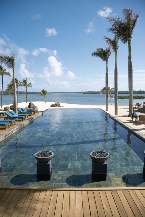 Den Gästen des Resorts stehen vier verschiedene Pools zur Verfügung: ein Infinitypool (auf der Ile aux Chats gelegen), ein California-edge pool, der in den Infinitypool übergeht, ein 25 Meter-Schwimmbecken neben dem Fitnesscenter und ein Kinderbecken im Kids Club. Die Gäste können zwischen zwei feinsandigen Stränden auswählen, die beide in Buchten auf der Ile aux Chats liegen.