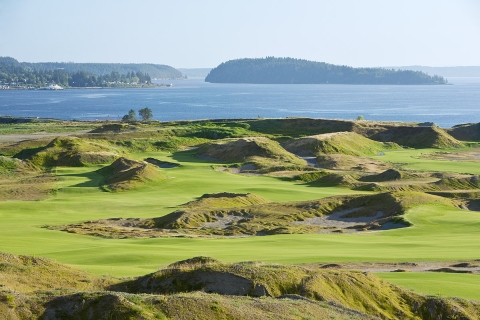 Der über 7.500 Yards lange Linkskurs wurde 2007 eröffnet und bereits als „bester neuer Platz“ prämiert sowie unter die zehn besten öffentlichen Kurse der USA gewählt. Für Aufsehen sorgte Chambers Bay vor allem, weil der Club nur ein Jahr nach dessen Eröffnung bereits als Austragungsort für das US Open im Jahr 2015 vorgestellt wurde (2010 fand dort bereits das prestigeträchtige US Amateur statt). Robert Trent Jones Junior und seine Kollegen Bruce Charlton und Jay Blasi gestalteten den anspruchsvollen Parcours in einer ehemaligen Schottergrube, von allen Spielbahnen aus ist das Meer sichtbar.