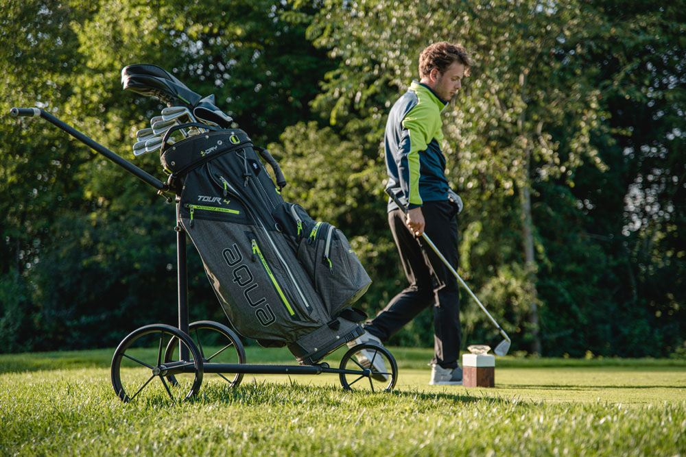 Die Aqua Hybrid 4 ist die ultimative Mischung aus Strapazierfähigkeit und Vielseitigkeit, maßgeschneidert für Golfer, die alles haben wollen. Diese innovative nur 2,5 kg „leichte“ Tasche wurde entwickelt, um bei jedem Wetter zu funktionieren, und bietet vollständigen wasserdichten Schutz. Sie ist sowohl für den Einsatz am Trolley als auch zum Tragen optimiert und verfügt über leicht zugängliche Fächer. Erhältlich in 6 Farben um € 299,90.