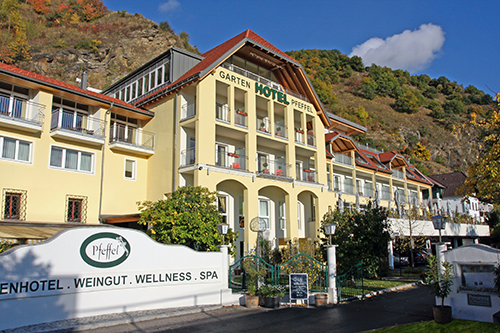 Einst ein kleines Gästehaus, zeigt sich das Gartenhotel und Weingut der Familie Pfeffel heute als innovativer, ganzjährig geöffneter Vier-Sterne- Betrieb. Seine Lage gleich neben Dürnstein, die Erzeugnisse aus eigener Landwirtschaft und dem Weingut, höchster Komfort mit künstlerischer Note und nicht zuletzt seine Gastfreundschaft machen aus „dem Pfeffel“ eine der ersten Adressen der Wachau. Leopold Pfeffel hat mit vier Zimmern begonnen, heute kann das großzügig-gemütliche Gartenhotel auf 120 Betten verweisen. Schon die Lage des Hotels mit Blick auf die Donau ist privilegiert, und auch die Gäste selbst könnten besser sich nicht betten: „Steinfeder“, „Federspiel“ oder gar „Smaragd“ – die Zimmer tragen nicht nur die Namen von Wachauer Weinen und Lagen, sie sind auch das beste Beispiel für Wachauer Gastfreundschaft.